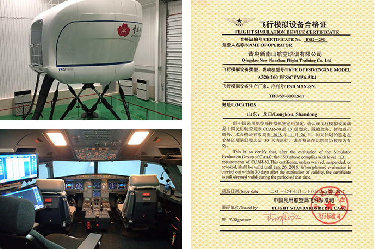 飞行模拟机(俗称“全动模拟机”)根据模拟机的逼真度,分为A、B、C、D级,D级全动飞行模拟机可以满足飞行员训练的全部要求,培训中心的这台模拟机是按D级设计制造和鉴定。